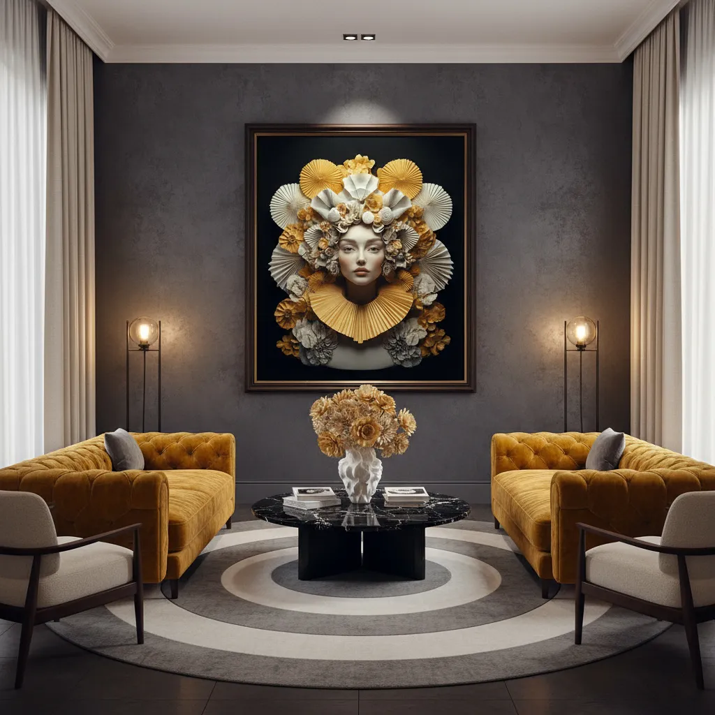„Хартиено сияние“ работи в пространства, които ценят детайла — модерен интериор с чисти линии, минималистична спалня, кабинет с характер. Тъмният фон го прави автономен: не се нуждае от специален контекст на стената, за да застане уверено. Светлите стени го показват в пълна сила, но и тъмните го носят достойно.