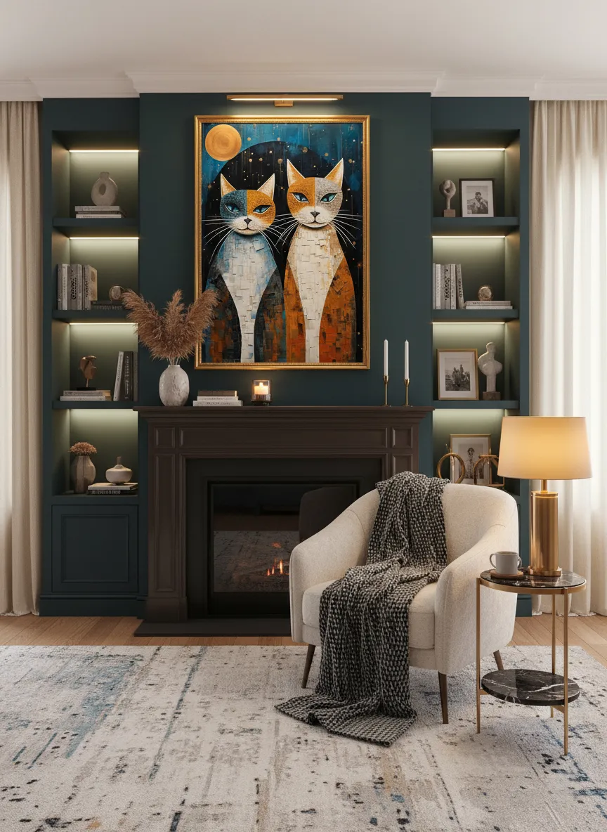 „Нощни спътници“ е избор за хора, които обичат котки като верни другари и магични, текстурирани нощни сцени.
